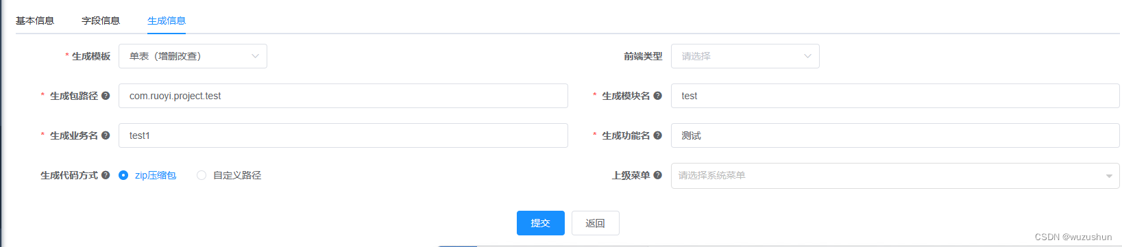 最近经理给了个新任务,独立开发个新系统满足内部提出来的需求,在找框架的时候选择了若依。导入新建菜单对应的表自动生成前后端代码,生成后放在代码对应的目录下即可,