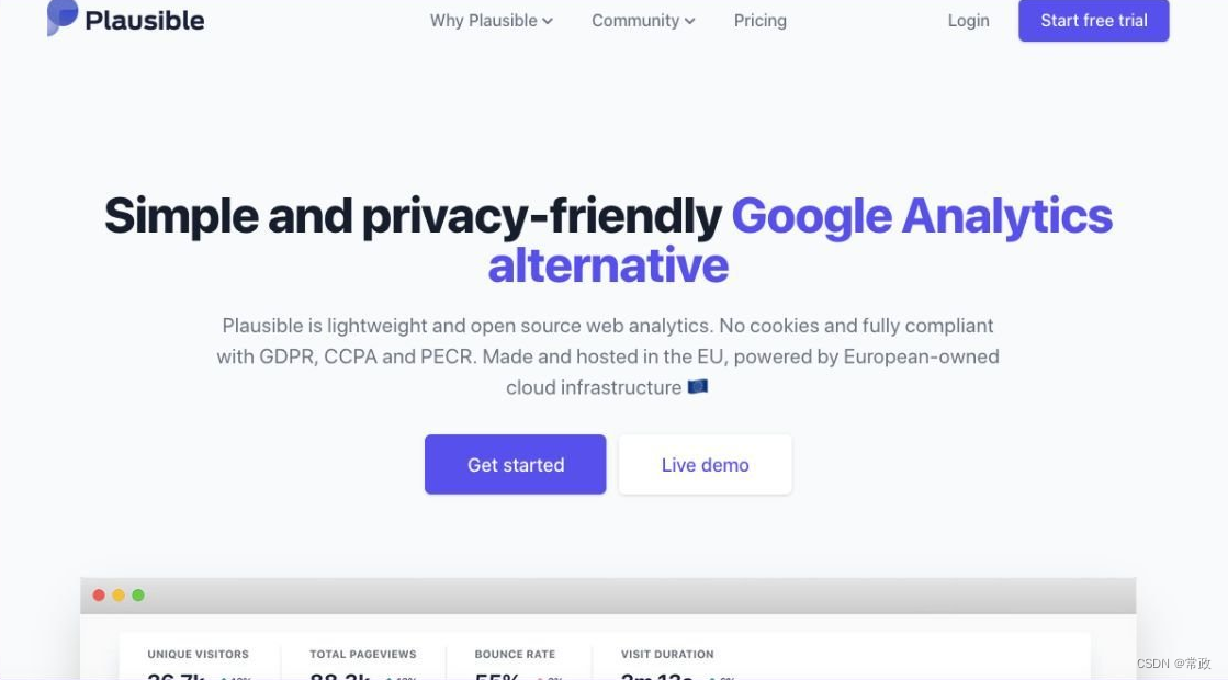 产品名称:Plausible Analytics(Plausible Analytics | Simple, privacy-friendly Google Analytics alternative)