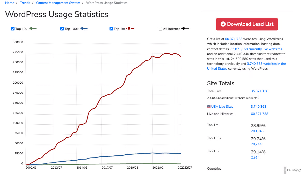 它将大数据这个新生产要素的价值挖掘得淋漓尽致,首先最令人心动、让人忍不住掏向腰包的卖点便是——帮助商家精准挖掘潜在客户!比如说一家做WordPress网站优化的服务商,可以通过Builtwith发现特定地区采用了WordPress系统的网站……包括还可以进行针对市场竞品的调研,比如阿里云可以通过Builtwith一窥华为云的市场覆盖率等。