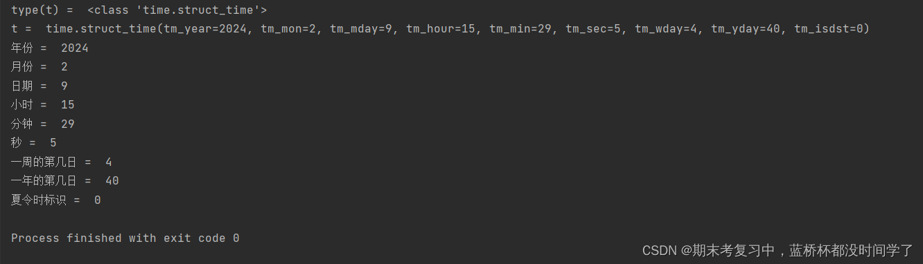 print('秒 = ',t.tm_sec) # 0 - 61