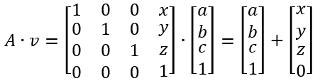 设平移向量为 [x, y, z, 0]',则 A * v 如下: