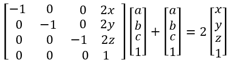 若用 3x3 矩阵描述对称变换,即 A 为 3x3 矩阵,则 A 中的元素必须依赖于 a, b, c,这样就会降低变换的一般性(或通用性),这也解释了为什么对称变换要用 4x4 矩阵描述的问题。