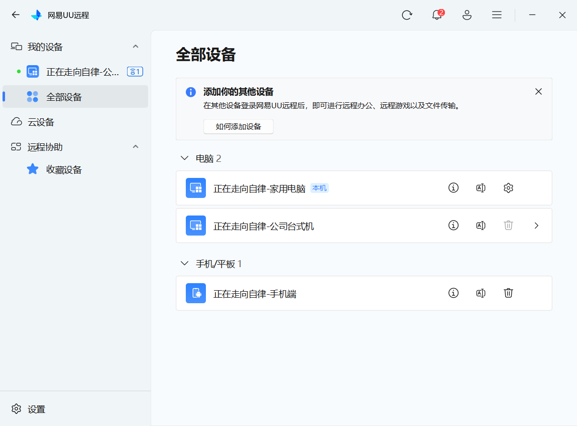 - 该设备将自动出现在“我的设备”列表中。建议立即设置清晰的备注名(如“正在走向自律-手机端”、“正在走向自律-PC端”),便于多设备管理。