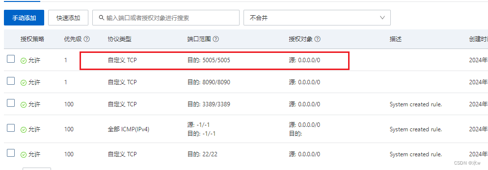 (3)需要在阿里云服务器的官网登录自己的账号,打开服务器端的安全组5005端口,