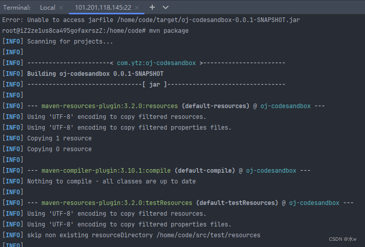 (2)然后在本地的idea终端的远程连接服务器的终端里,输入下列命令,