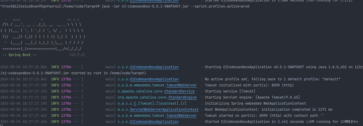 java -jar oj-codesandbox-0.0.1-SNAPSHOT.jar --sprint.profiles.active=prod