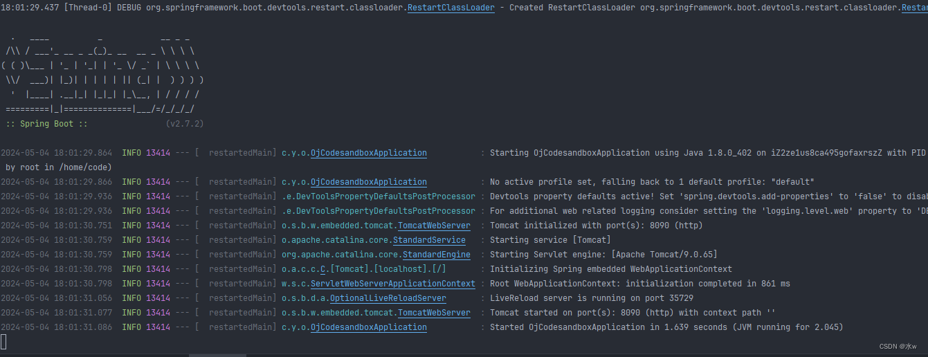 等待下载安装完成之后,就可以看到我们的项目在8090端口启动了,