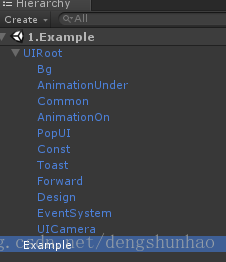 咳咳,进入正题,我最新关注的就是UI间的切换,上一个项目版本使用的是从siki学院学习的UI框架,那么我们来看看QF中UI的切换(此案例在QFramework\Assets\QFramework\Example\UIKitExample\1.Example.scene)