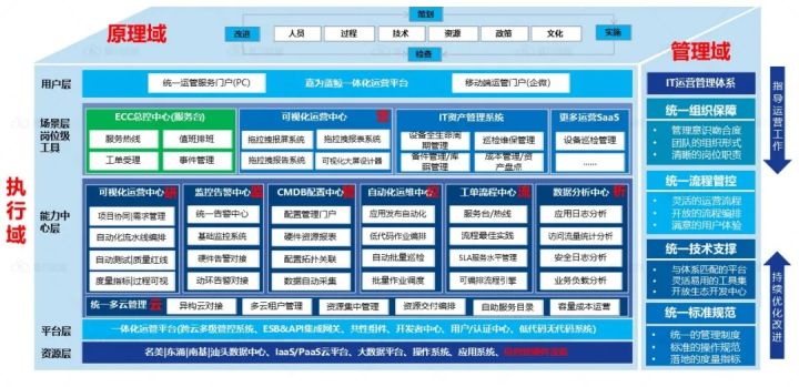 据了解,在数字政府领域的建设中,嘉为蓝鲸结合多年政务行业运维运营经验,针对性设计“监、管、控、流、析、营、研、云”八大场景化能力,形成政务行业运维运营一体化解决方案,整合为原理域、管理域及执行域三个模块,致力于帮助各层级政府单位、公检法司机关、事业单位、医疗单位机构、教育单位机构等逐步实现数字化转型,最终迈向智能化运维运营。
