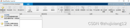 首先为了启动分类学习器,可以直接在命令行输入“classification Learner”或者在MATLAB的菜单栏中选择“应用程序”选项卡下的分类学习器应用classification Learner。