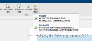 一但得到满意的模型,可以通过两种方式加以利用。一种是用户导出训练好的模型到工作空间中,这个时候用户将发现变量空间多了一个结构体变量,这个变量含有一个用于预测的成员函数,此时,用户将可以用它来做预测。但是如果用户希望更改模型,或者把它集成到其他的应用,则需要用到另一种方法,也是最通用的方法,即代码的形式使用。