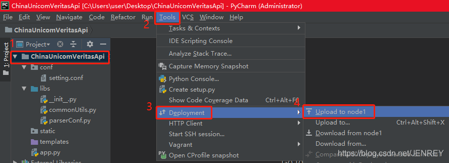 下载文件也是一样,选择 Tools | Deployment | Download from node1