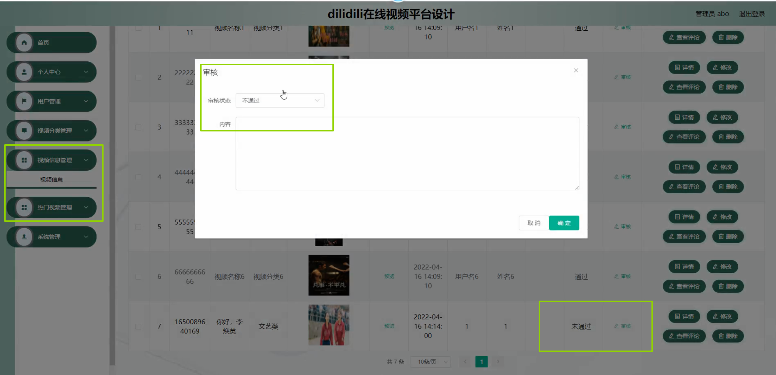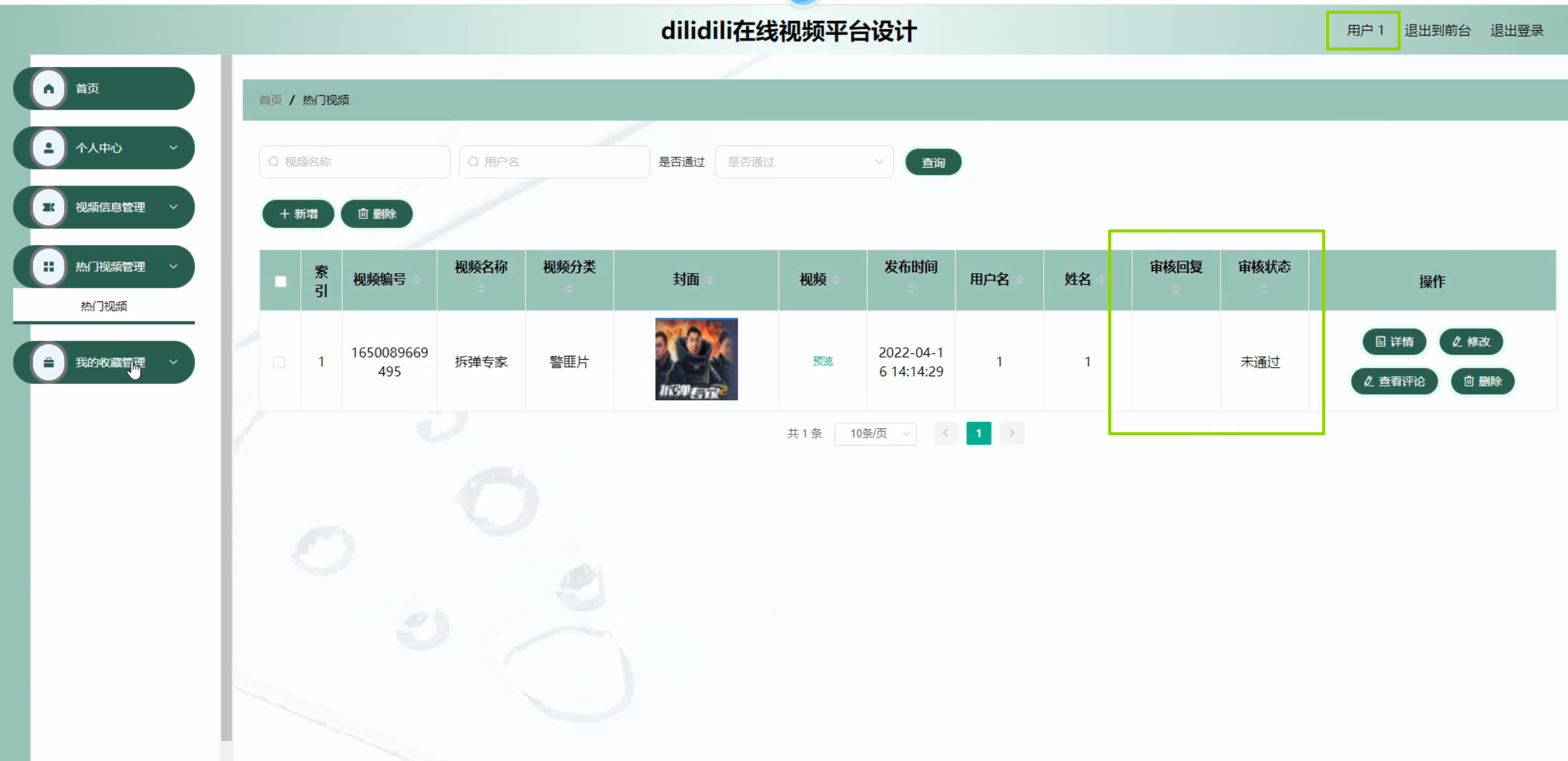 - 管理员可完成视频审核、用户管理操作,数据统计功能可正常展示核心数据;