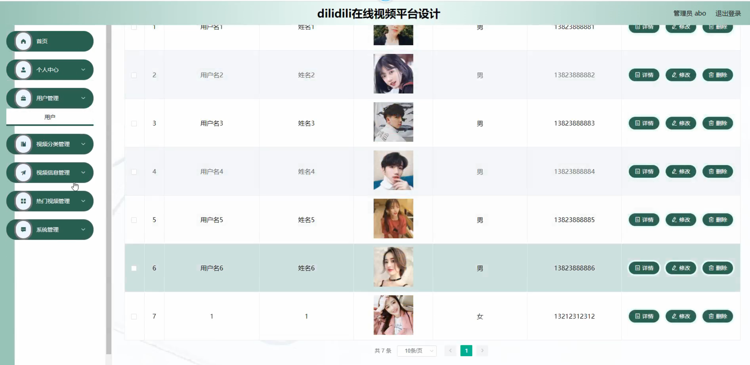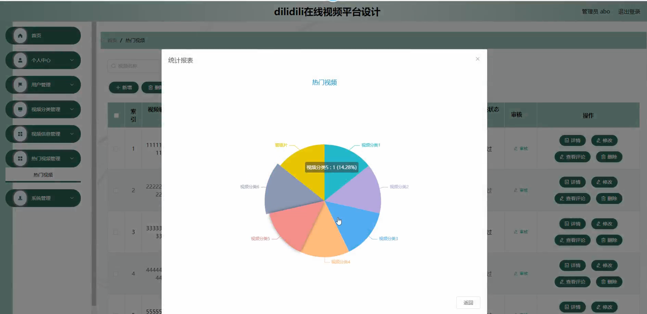 用户,视频分类,视频信息,热门视频,会员,会员视频