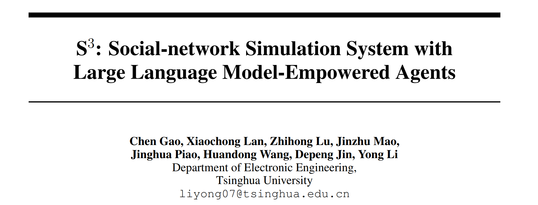 利用大型语言模型(llm)在感知、推理和行为方面的类人能力,并利用这些特性构建S3系统(简称社交网络仿真系统)。