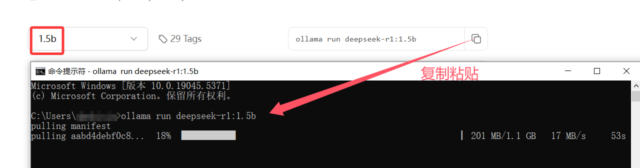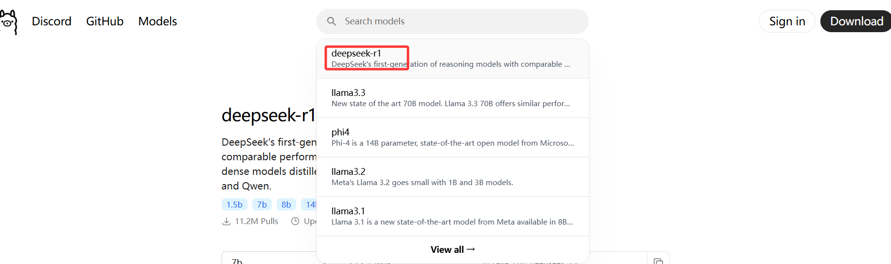 - 使用 Ollama 搜索 Deepseek-R1 模型: