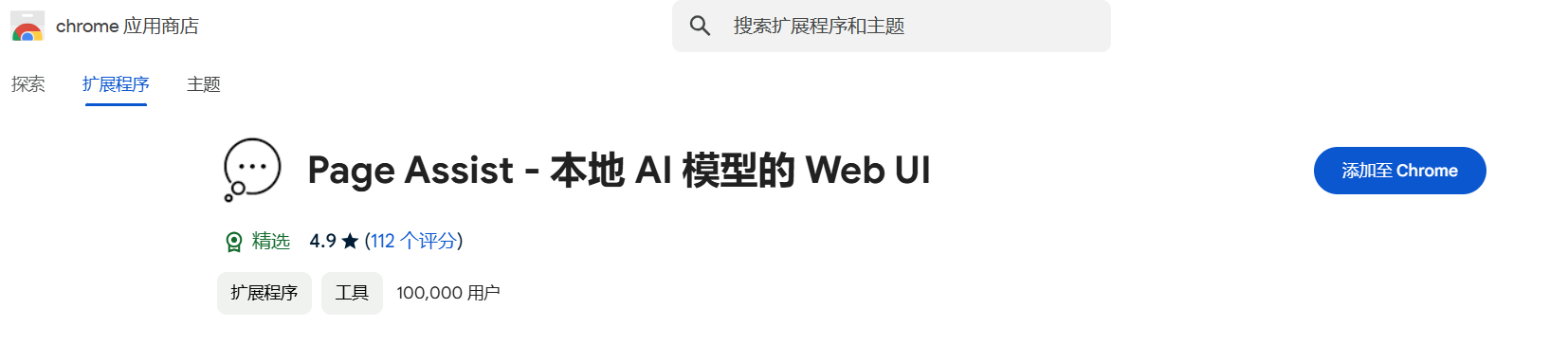 - 找到 Page Assist 插件,点击“添加到 Chrome”按钮。