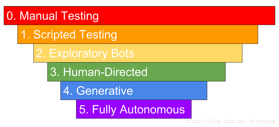 如果没有人的帮助,机器能够评估应用程序,决定何时、何地、以及如何执行测试,并根据测试结果对人类(或机器)进行总结以作出发布/不发布决定。