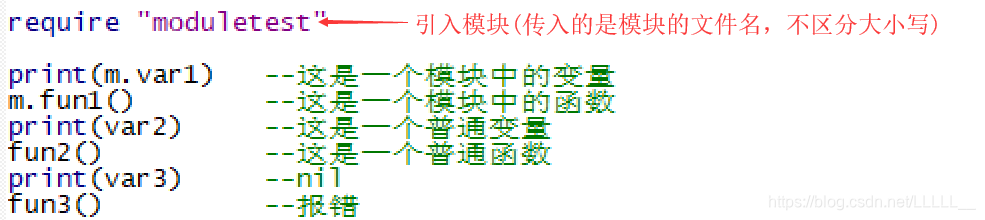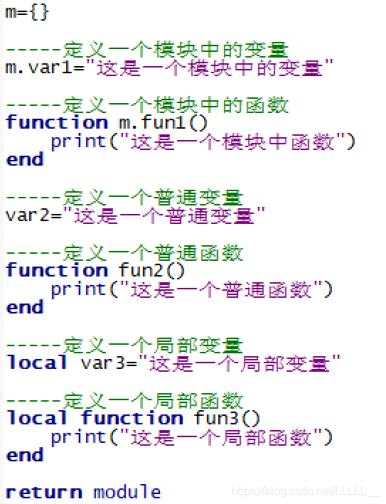 Lua中的模块就是一个封装库,类似于C#的命名空间,可以把公有的变量和方法放在一个文件中,以 API 接口的形式在其他地方调用,有利于代码的重用和降低代码耦合度