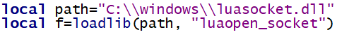 一般情况下我们期望二进制的发布库包含一个与前面代码段相似的stub文件,安装二进制库的时候可以随便放在某个目录,只需要修改stub文件对应二进制库的实际路径即可。将stub文件所在的目录加入到LUA_PATH,这样设定后就可以使用require函数加载C库了。