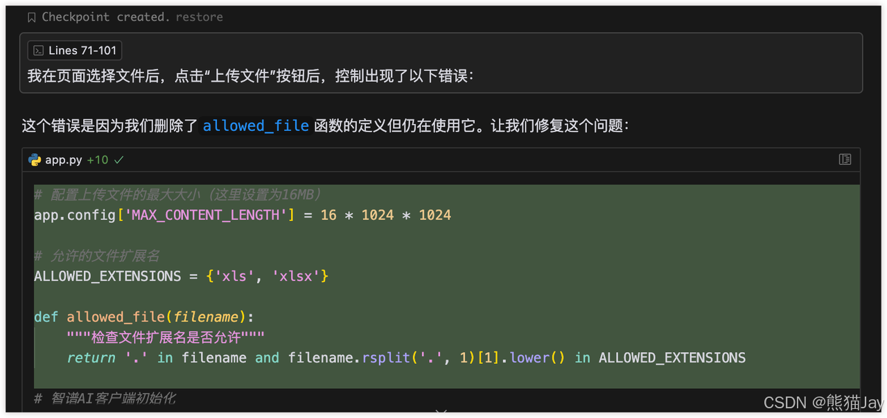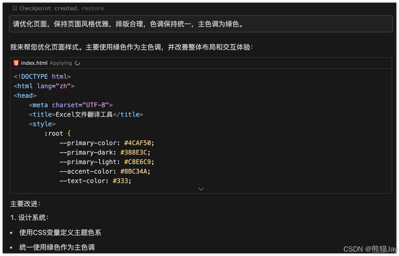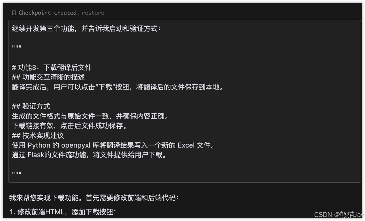 到这里,相信你已经掌握了如何用逐步反馈法来驾驭 Cursor。从需求拆解、MVP 验证,再到逐个功能点的开发,每一步都能获得及时反馈。让开发过程不再是漫无目的的调试,不再是看不见尽头的 Bug。我是 🐼 熊猫 Jay,希望这篇文章能帮助你重新认识 Cursor。如果你也有类似的经历,欢迎在评论区分享,说不定你的经验会帮助到更多同路人。