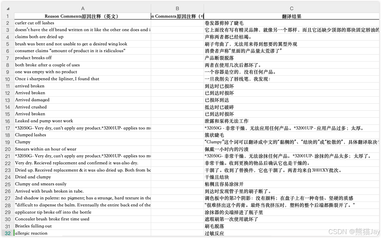 但是好像有点问题,译文怎么跑到 C 列了,明明应该出现在 B 列才对。