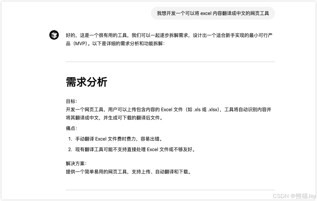 首先 AI 帮助我分析了需求的主要目标和痛点。