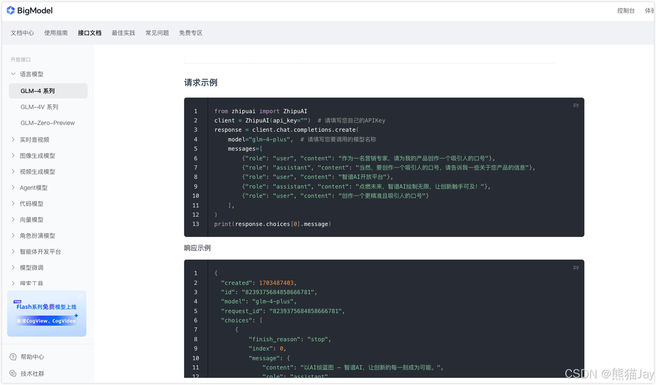 地址:https://bigmodel.cn/dev/api/normal-model/glm-4
