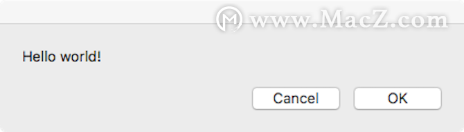 tell application "System Events" to display dialog "Hello world!" - 运行脚本:音锤按钮旁边是播放按钮。打那个,看看会发生什么。