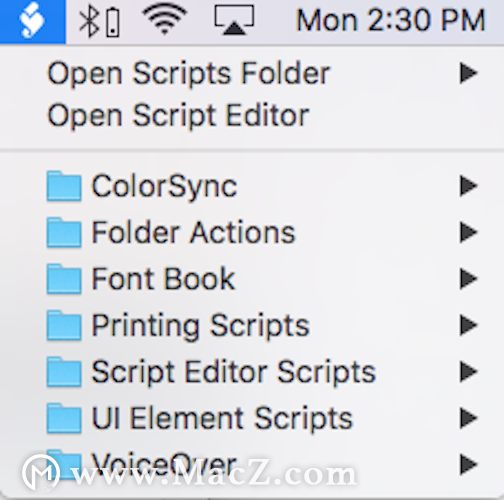 在“脚本”菜单栏中进行操作,以了解AppleScript还可以为您做什么。要查看幕后情况,请转到“ 脚本”文件夹,右键单击任何脚本,然后使用“脚本编辑器”将其打开。