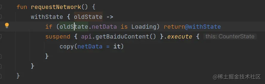 setState完整长这样,可以看到android studio自动给我们提示的this:CounterState。