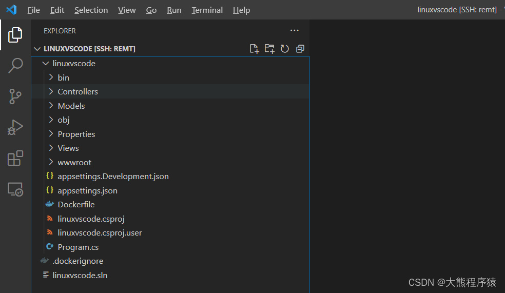 三、连接,输入密码,打开远程.net core 项目。发布,并运行.net core。一、安装git客户端支持ssh。二、VS Code远程开发插件。