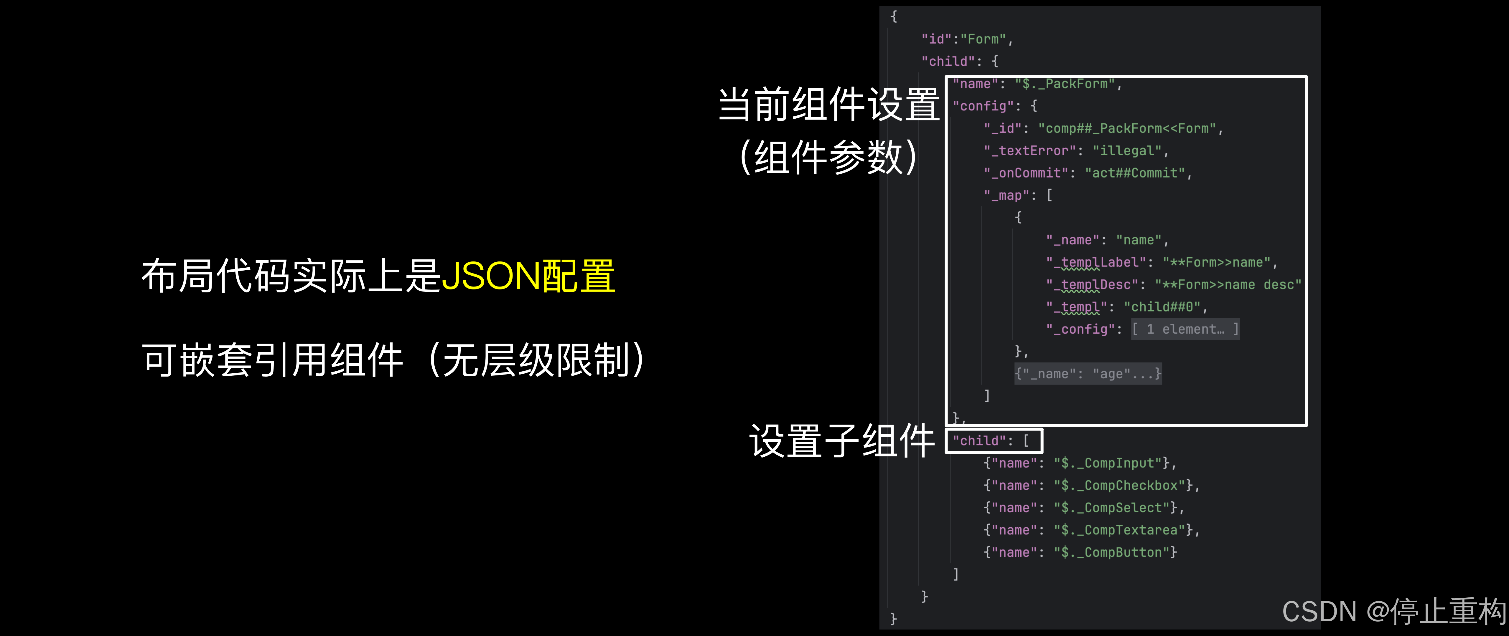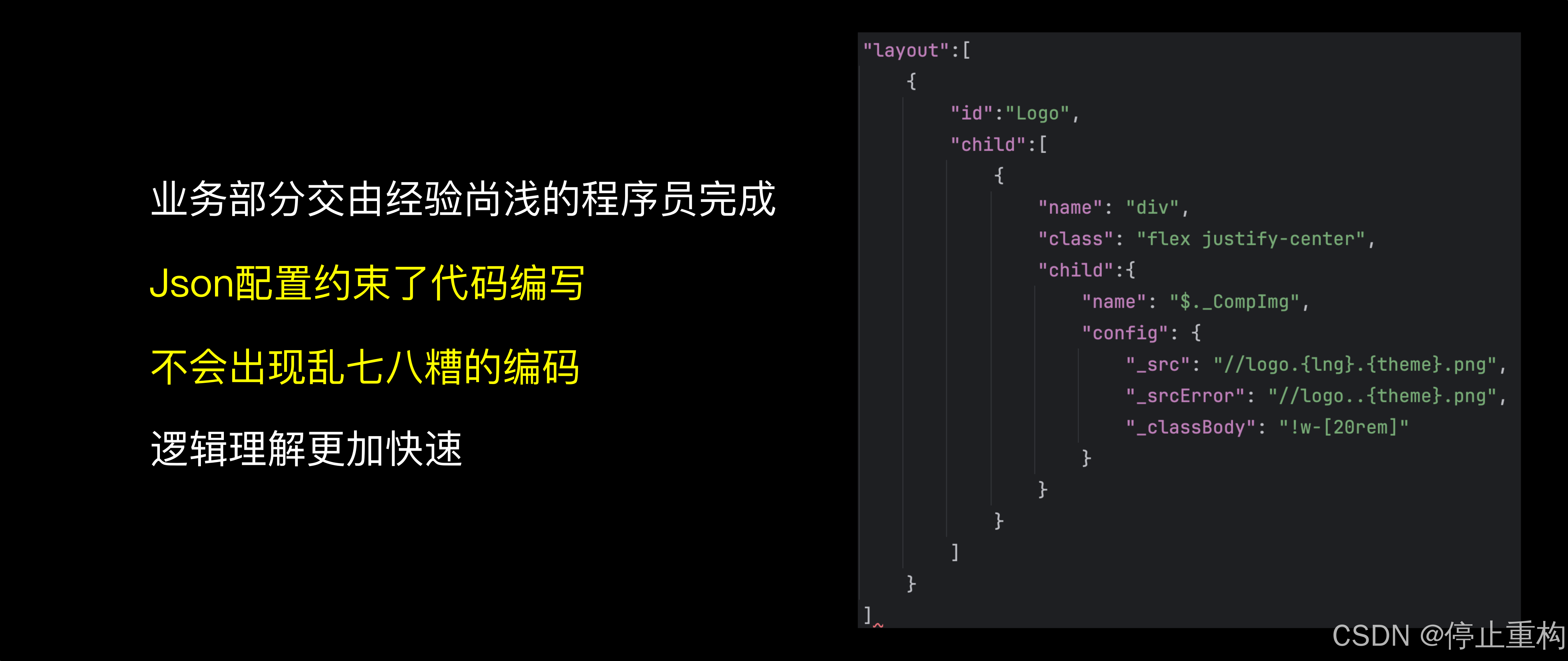 业务代码以JSON配置替代,除了能加快开发效率。