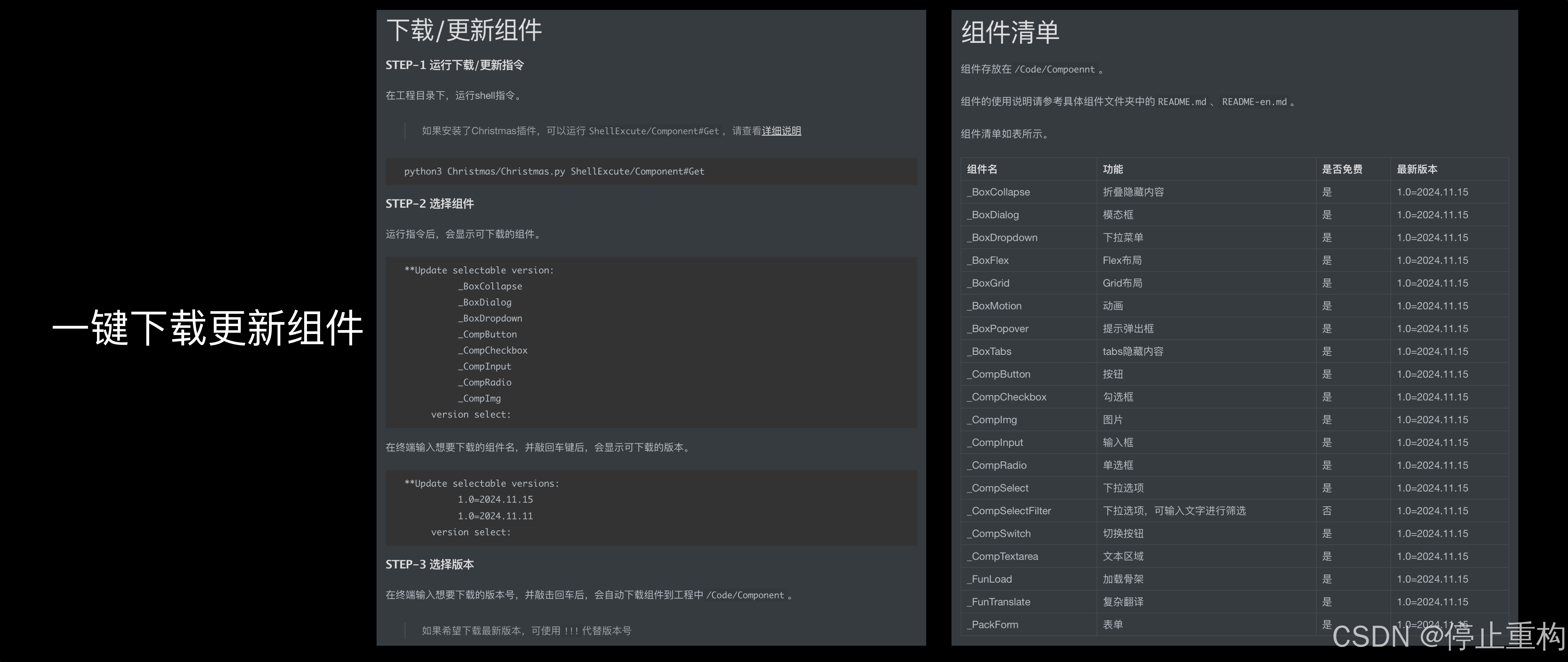 这里需要特别说明的是,这里的组件听起来跟组件工具箱一样,如headlessUI、ElementUI这些组件工具箱。