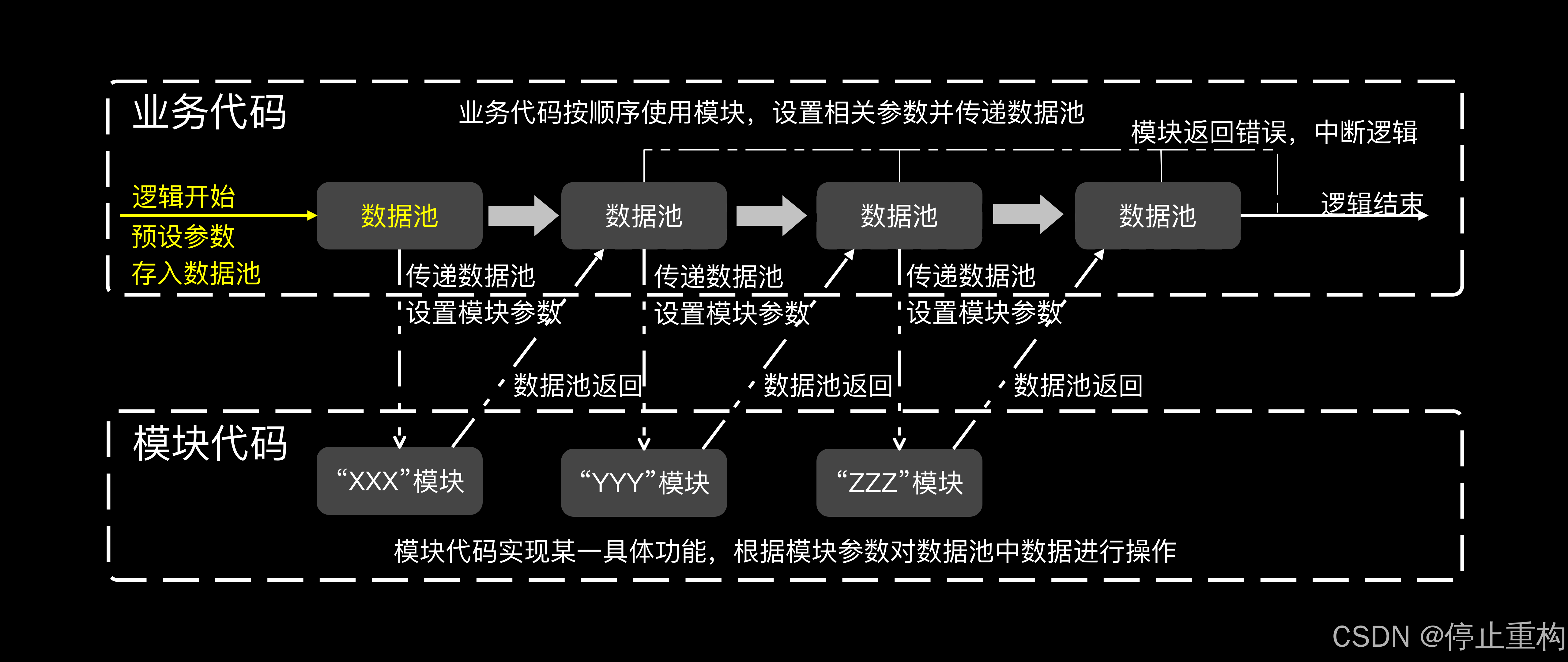 数据池可以看作是一个功能流程的全局变量,所有模块都可以对其进行添加、删除数据。
