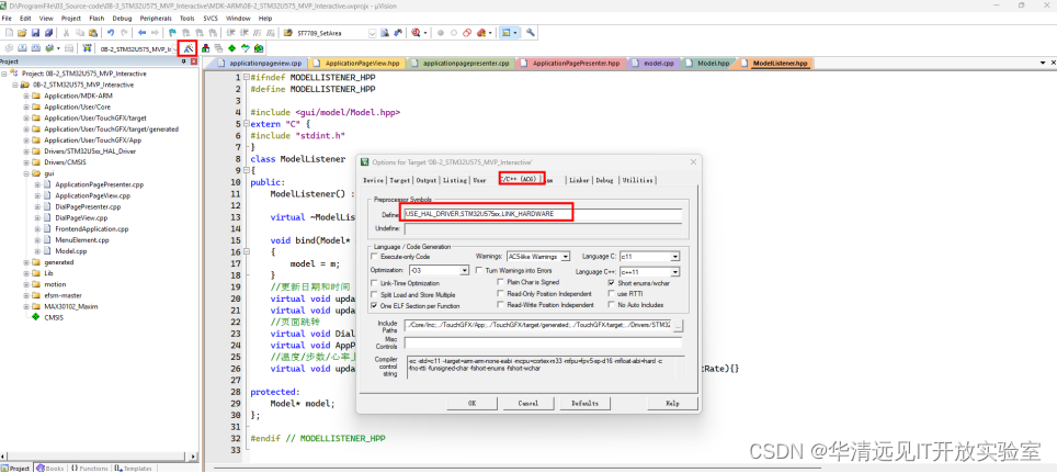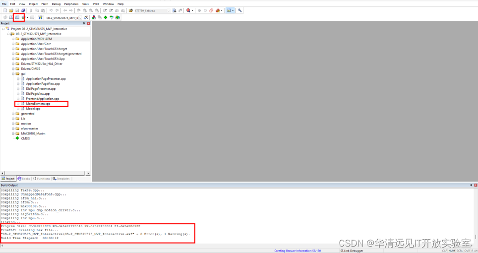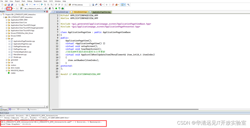 本文例程是基于 TouchGFX 的智能手表设计—Designer 软件 UI 设计的例程 0B-2_STM32U575_MVP_Interactive工程的拷贝,用于MVP架构下的逻辑代码添加。