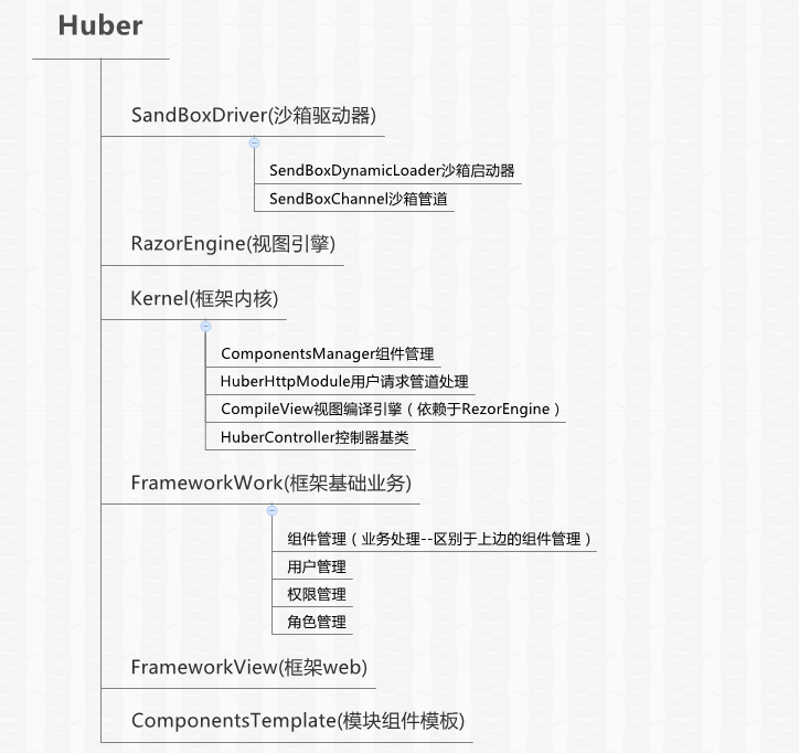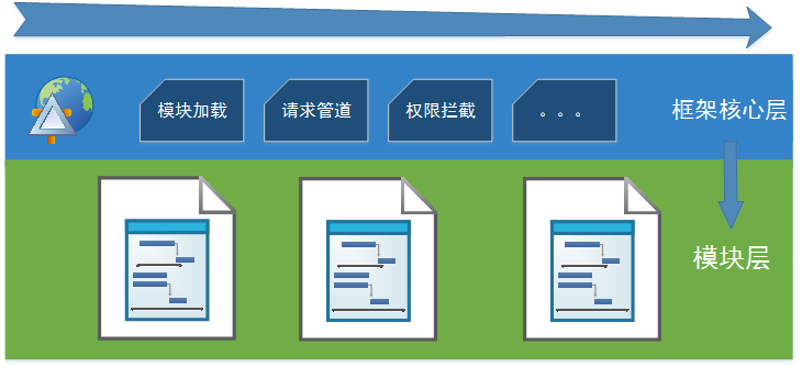 看完上边,你可能会想把每一个模块都作为一个web部署不就行了吗?那如果这样,就需要一套单点登录的机制来协助整个平台的运作了,而且每一个模块中都需要引用权限过滤的相关功能,再加上我们要管理茫茫多的小站点,额,头大了吧。综上所述,我们的框架就是一个整体的权限鉴别入口及功能路由器,协调每一个模块良好运转。