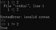 Python 2.x中,不等于运算符有两种写法:!=和<>,