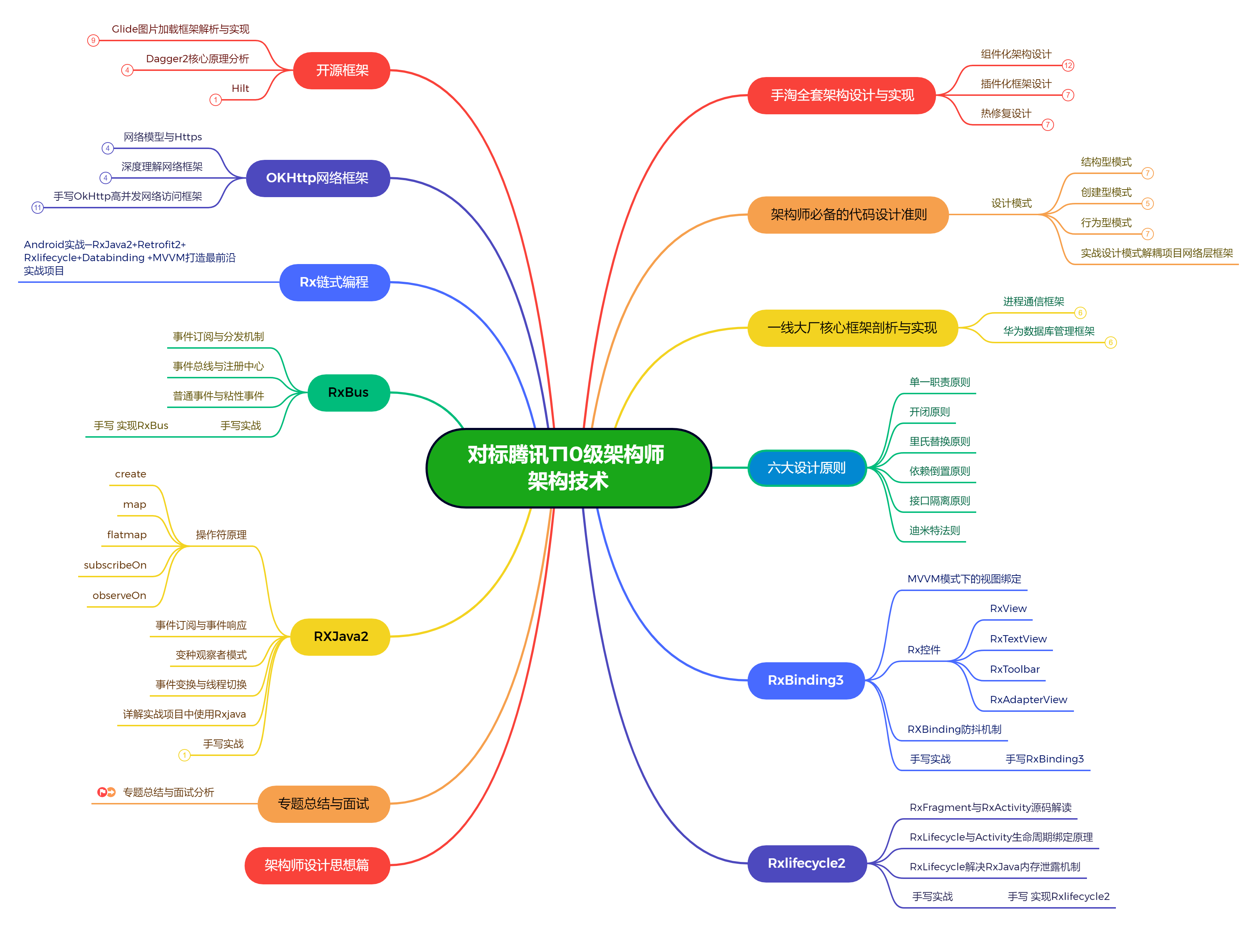 好了,今天有关于 MVC、MVP、MVVM 的框架设计的阐述就到这里了;为了帮助大家了解更多架构师必备的技术知识,这里特别提供一份由腾讯大佬所整理的一份进阶架构师的思维导图及其配套的一份学习手册;有需要思维导图及学习笔记的朋友: 可以私信发送 “架构” 即可 直达获取;希望大家看完之后能给大家一些帮助