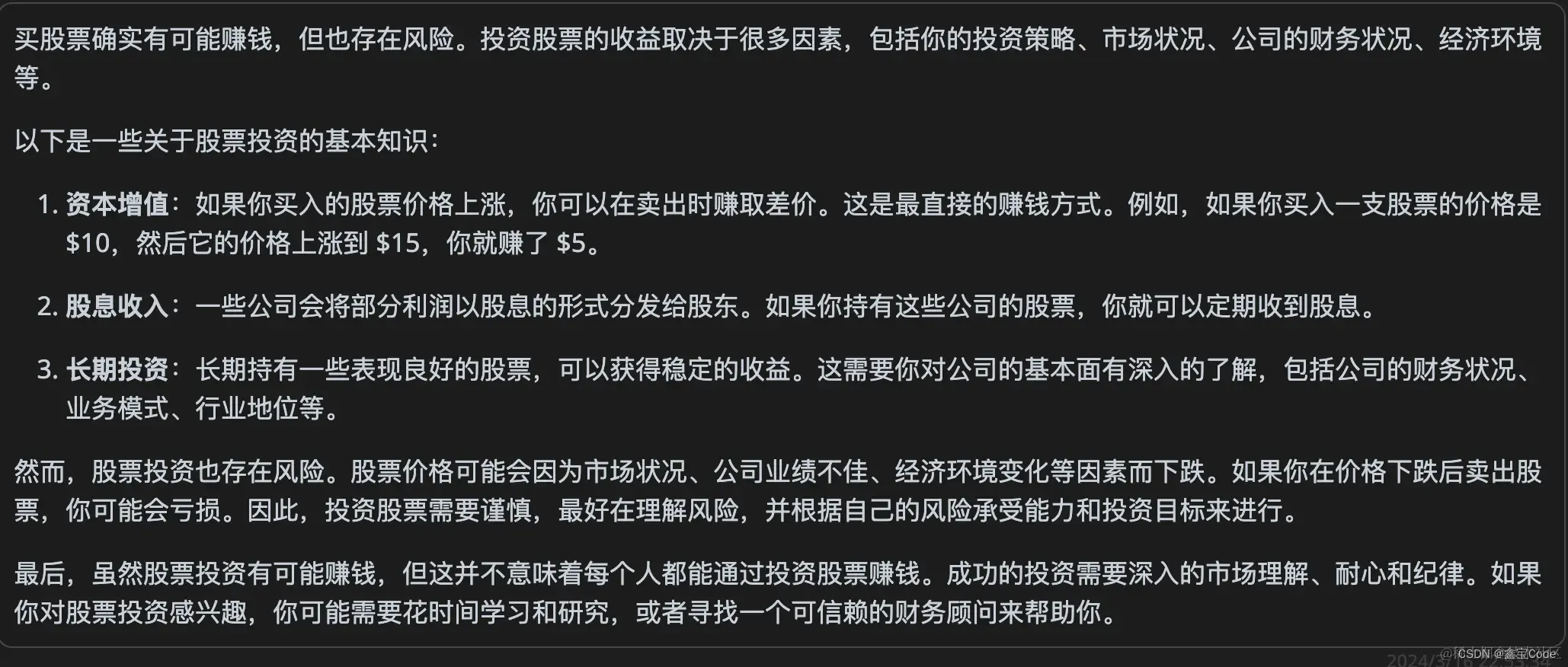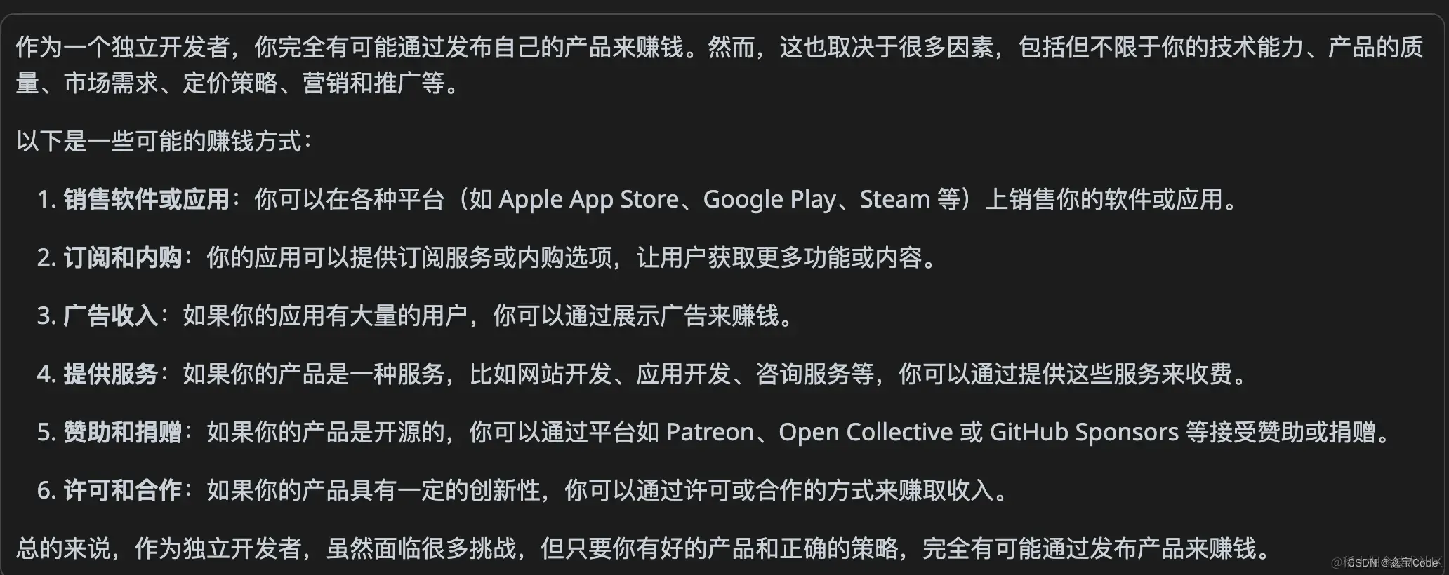 我觉得独立开发赚钱吗?这个问题跟 买股票赚钱吗?是一类的问题,有着很多很多因素的影响,我们分别看下ChatGPT4对于这两个问题的回答。