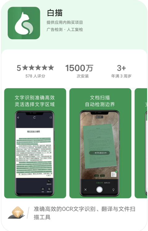 除此之外,华为应用商店庞大的用户量也为白描APP获取更多用户带来了很大的帮助。