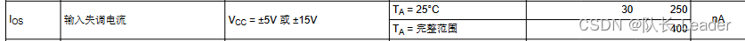 Ios表征输入级的两个管子,它们的偏置电流的差异。这是工艺决定的,因为无法把两个管子做的完全对称。如下图所示,两个管子的偏置电流会相差30nA,典型值。