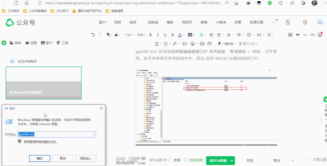 如果你软件安装路径特别长,运行程序容易报错,同时建议不要使用中文安装路径,虽然在最新版本的 Windows 中,安装路径扩展到大约 32,000 个字符,但需要让管理员激活“启用 Win32 长路径”组策略,打开运行输入gpedit.msc 在本地组策略编辑器窗口中系统配置 - 管理模板 >-系统 - 文件系统。在文件系统文件夹的组件中,双击 启用 Win32 长路径将其打开;