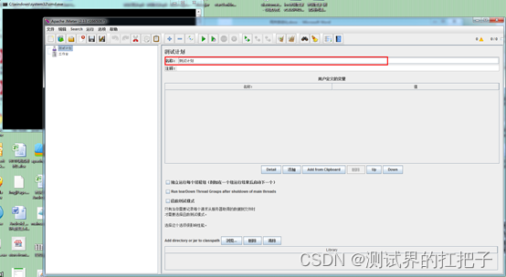 运行Jmeter。在安装目录下的bin文件夹里打开jmeter.bat,后面的黑框能够输出一些断言结果。在右面的名称那里可以修改你要创建的测试脚本的名称,默认是测试计划。