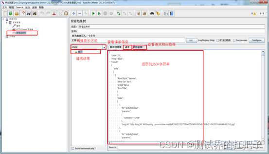 结果分析。点击结果树即可查看运行结果,绿色为成功,红色为失败。在右边点击相应数据就能够看到返回的JSON字符串了