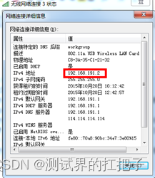 然后使用抓包的电脑B连接刚刚建立的WiFi,连接好后查看电脑B的IP地址。