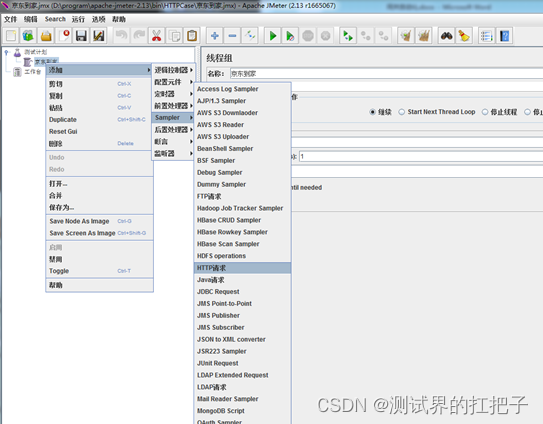 添加HTTP请求。右键线程组选择HTTP请求。