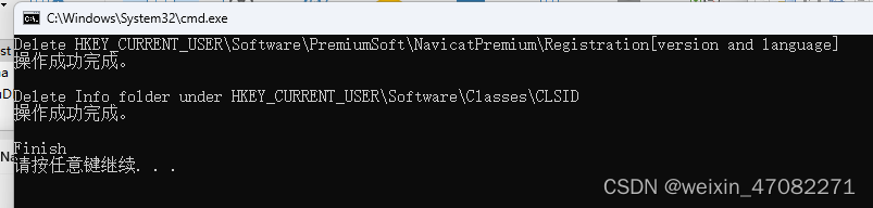 #这步可以定位自动化脚本中的路径是否正确,比如我的版本进去只有 Navicat,但是跟着网上的代码写是HKEY_CURRENT_USER\Software\PremiumSoft\NavicatPremium 就会报错找不到文件。参考第一步的路径跟本地安装路径,纠正后再执行。2.新建文本文档粘贴如下代码,命名为.bat,然后管理员身份执行。删除全部Date文件夹 --不用手动,作为路径定位。1.删