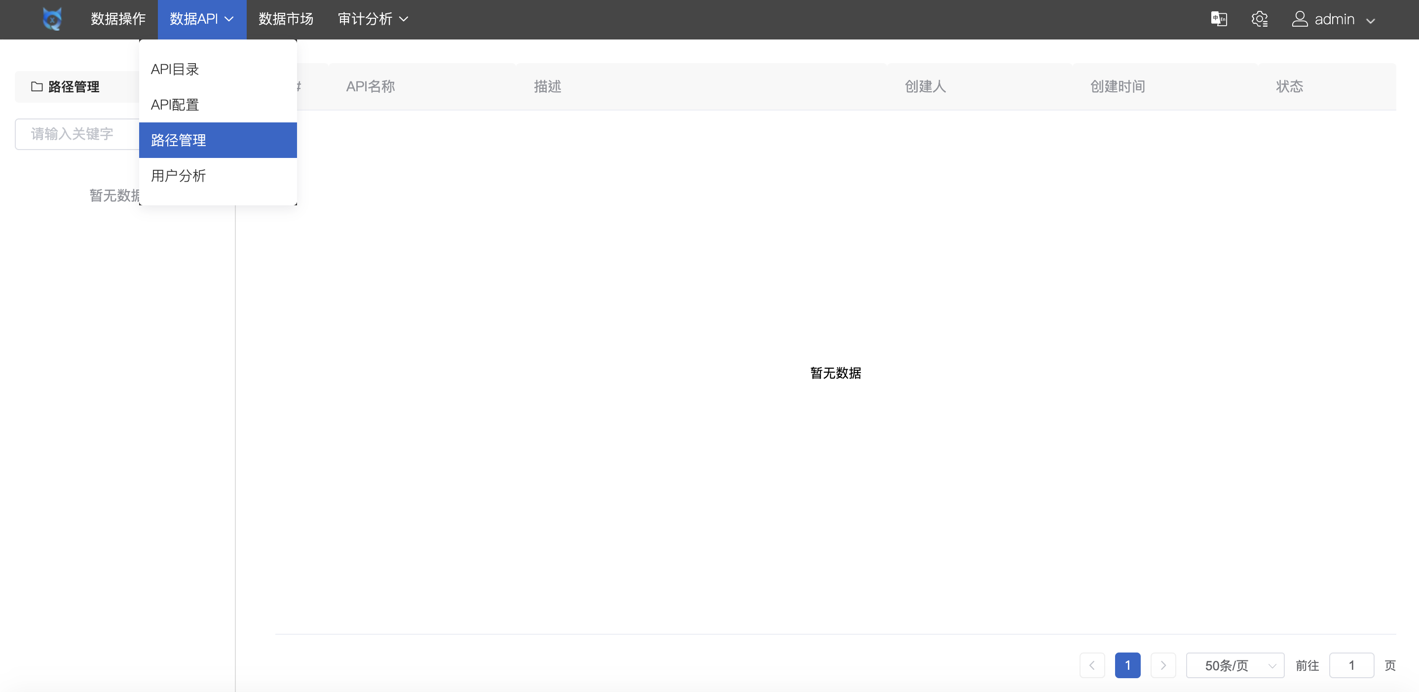 登录后,进入平台的 “数据API” 页面,创建API路径和业务目录。
