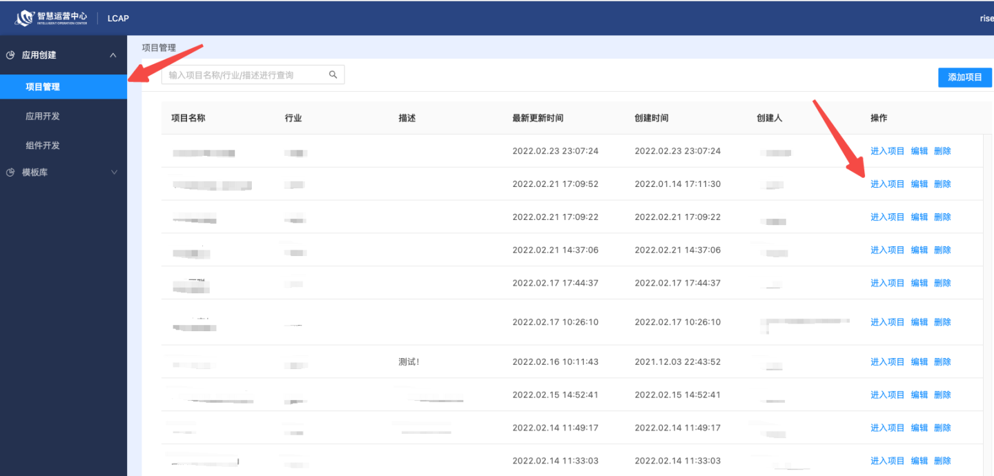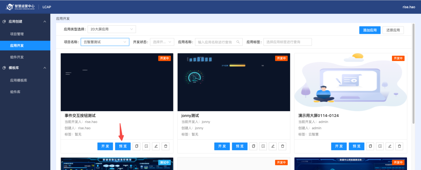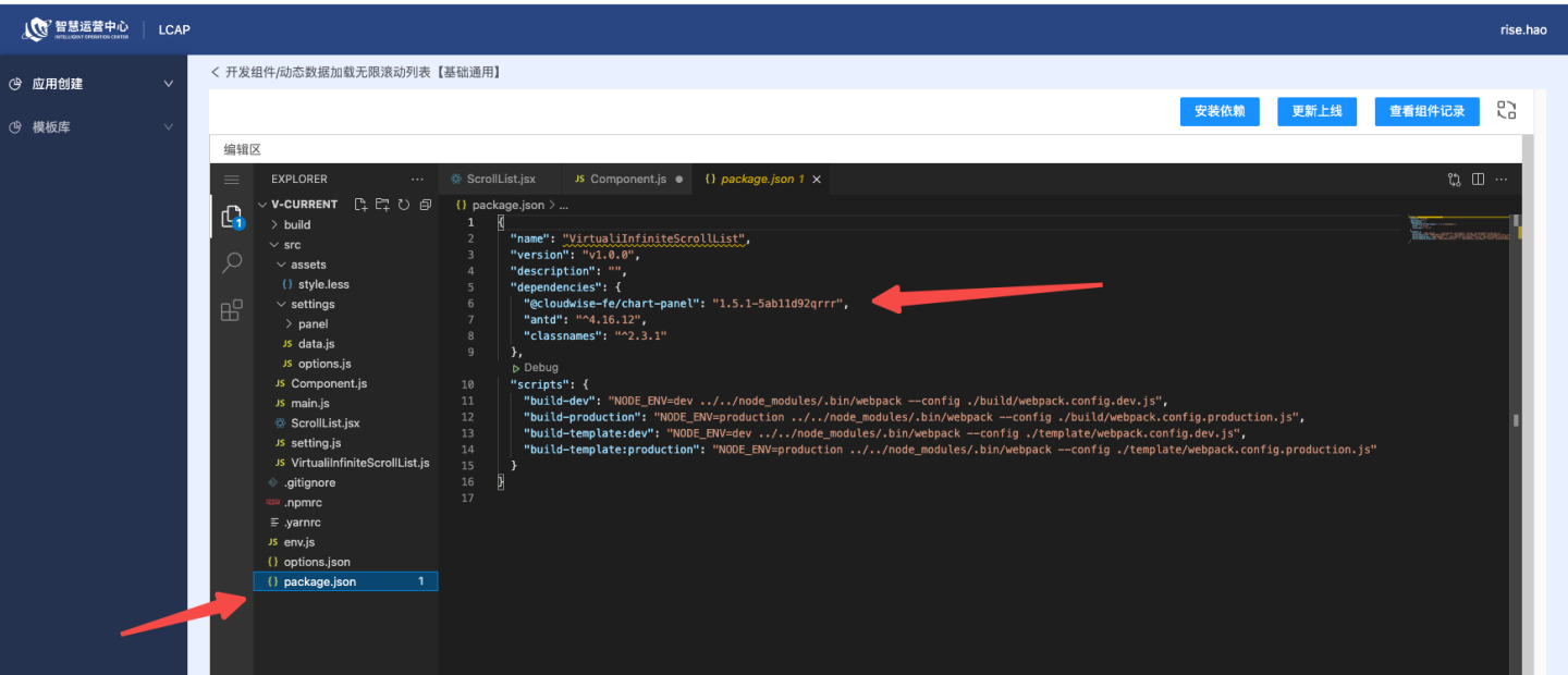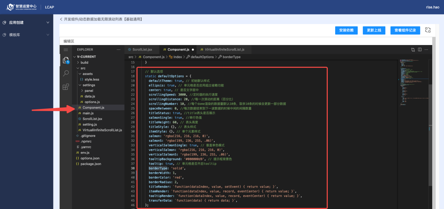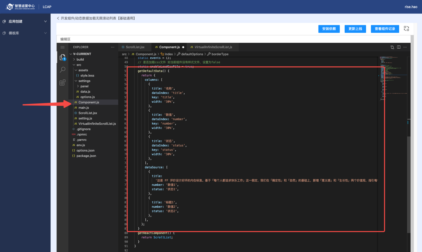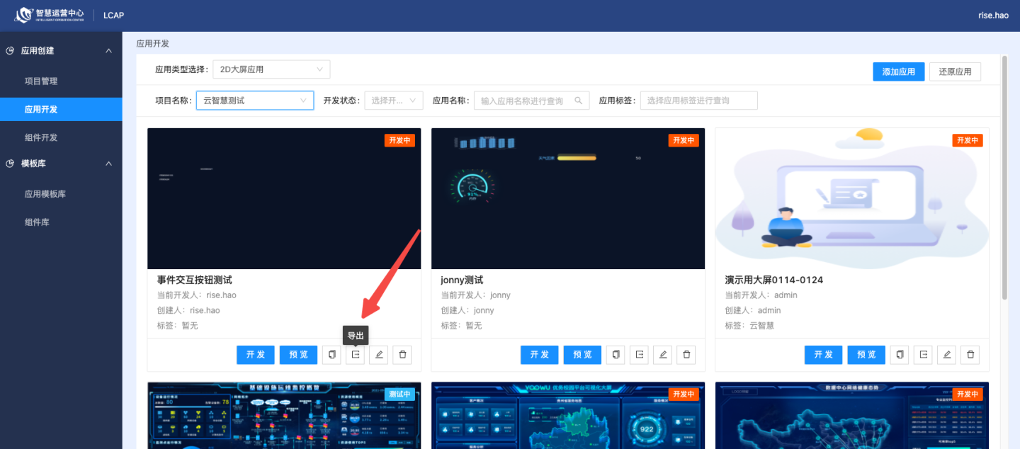 2. 项目组件开发,选择刚刚创建好的项目组件、点击开发组件